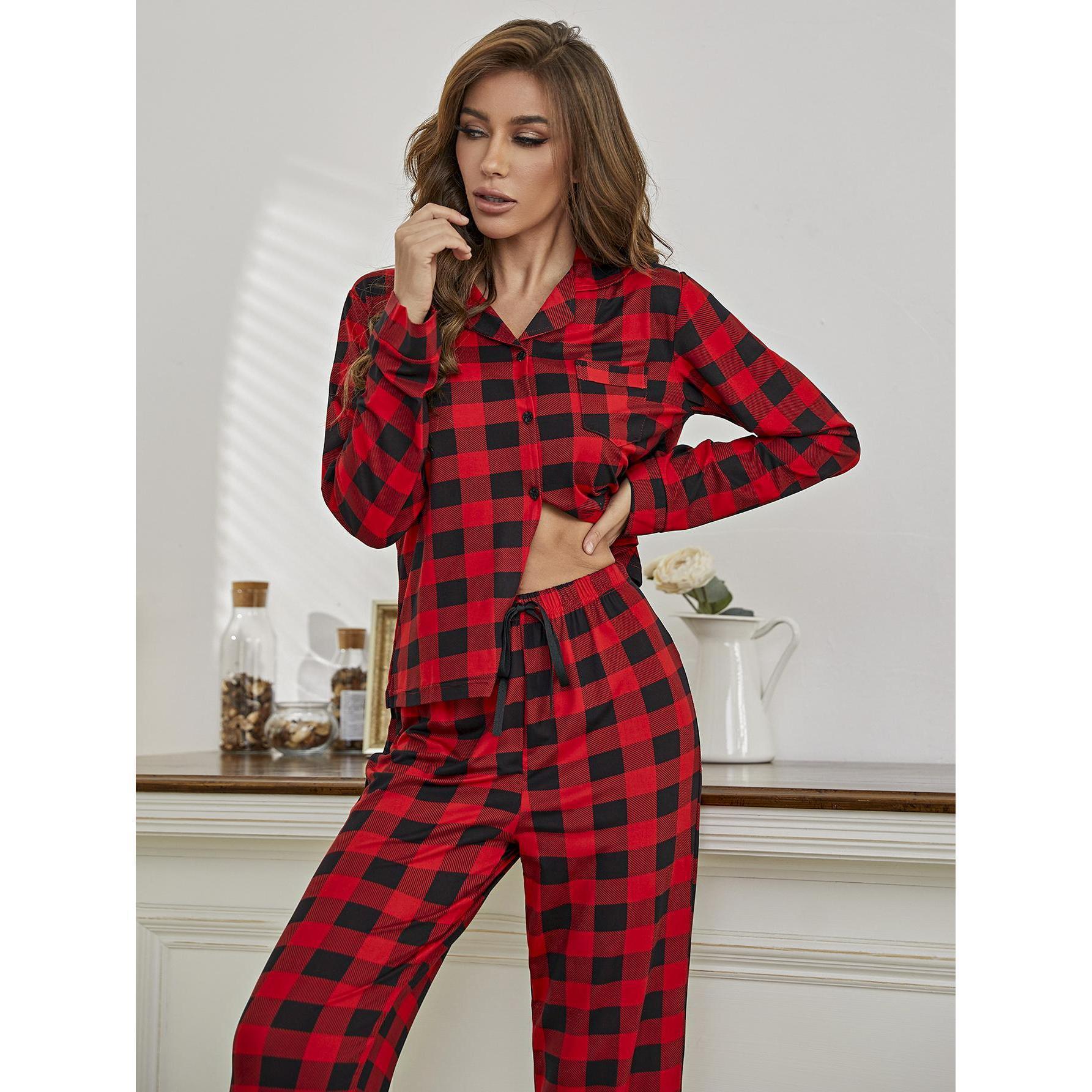 PJJAYS Women's Red & Black Checkered Casual Pajamas